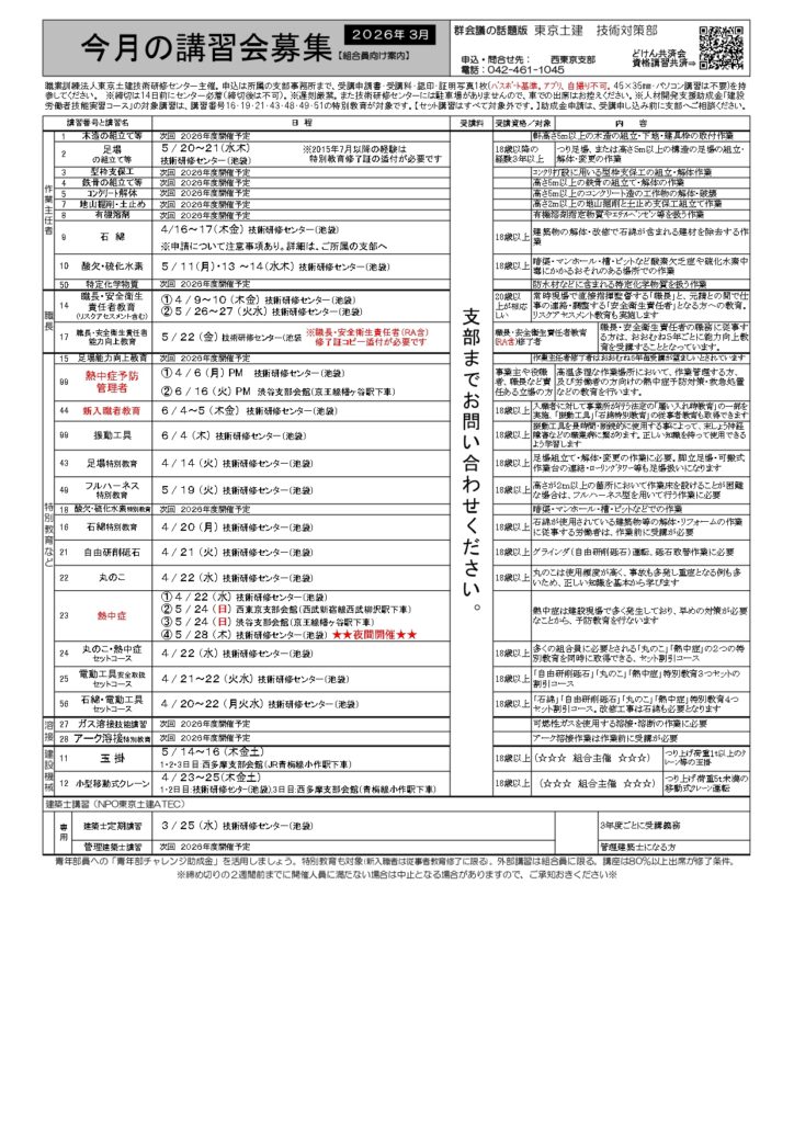 🆕3月の資格講習募集一覧